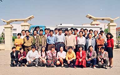 威海特種電源設備廠成立,并從電冰柜廠分離出來,以獨立法人資格對外自主經營,自負盈虧,租借廠房500平方米,圖為創業初期的28名員工。
